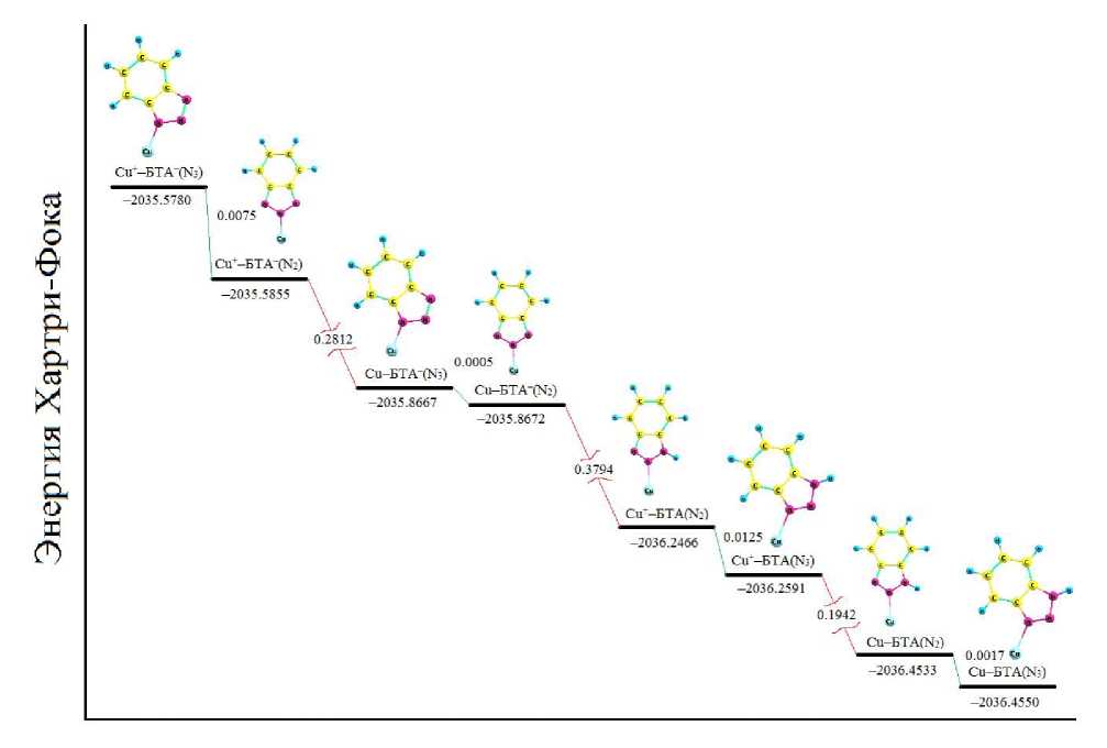 - Квантово-химическое моделирование DFT-методом возможных адсорбционных Cu–БТАадс и поверхностно-ассоциированных структур Cu–БТАпов. DFT-расчет КР-спектров.