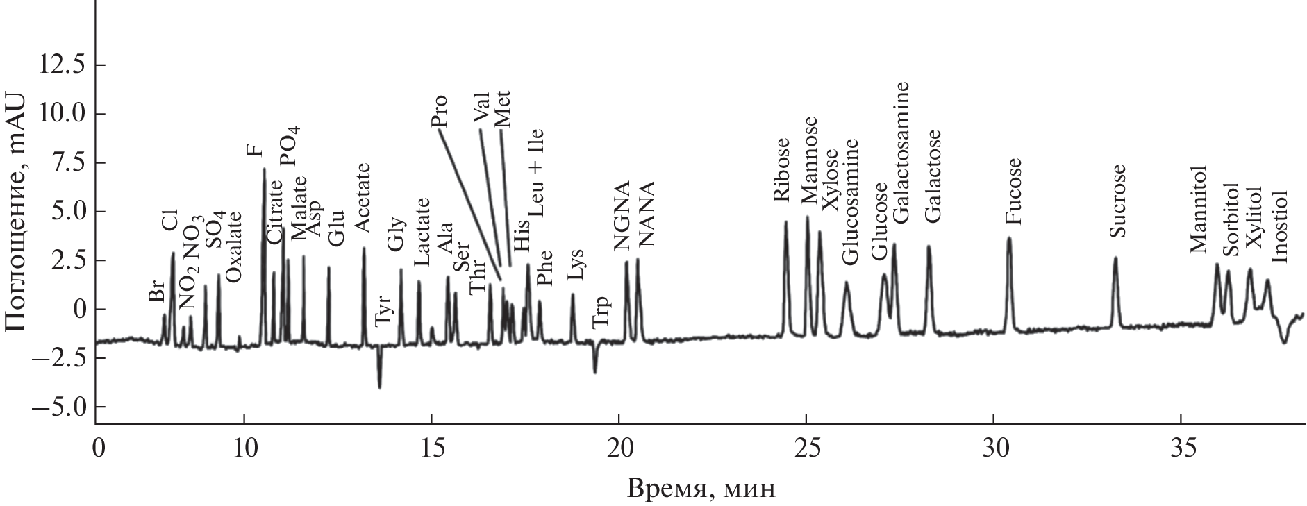 - Lee Y.H., Lin T.I., Luh T.Y. Determination of carbohydrates by high-performance capillary electrophoresis with indirect absorbance detection // J. Chromatogr. B: Biomed. Sci. Appl. 1996. V. 681. № 1. P. 87. https://doi.org/10.1016/0378-4347(95)00503-X