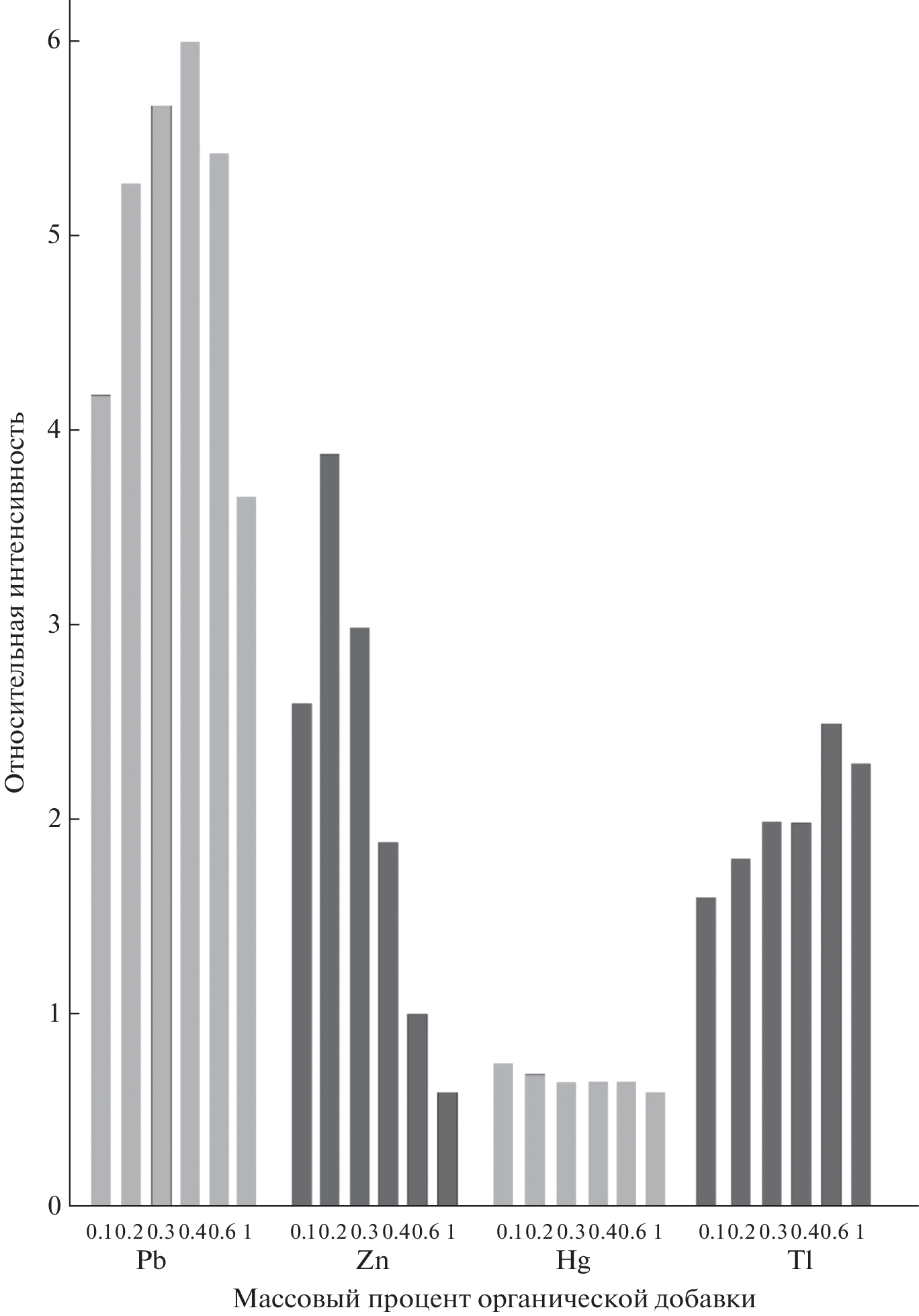 The effect of the nature and concentration of organic medium modifiers on the intensity of lines of some heavy metals (Ag, Cd, Hg, Pb, Tl, Zn) in the spectrum of a drop-spark discharge upon sample introduction into an electrolyte anode is studied. It is shown that additives of 0.1–6 wt % of polar organic compounds greatly increase the intensity of Pb, Tl, and Zn lines and reduce the intensity of Ag lines. The greatest effect, a twenty-fold enhancement of zinc lines, is observed upon the introduction of methanol into dilute acids. The cadmium signal is insensitive to organic impurities in dilute acids, but is enhanced in concentrated salt solutions.