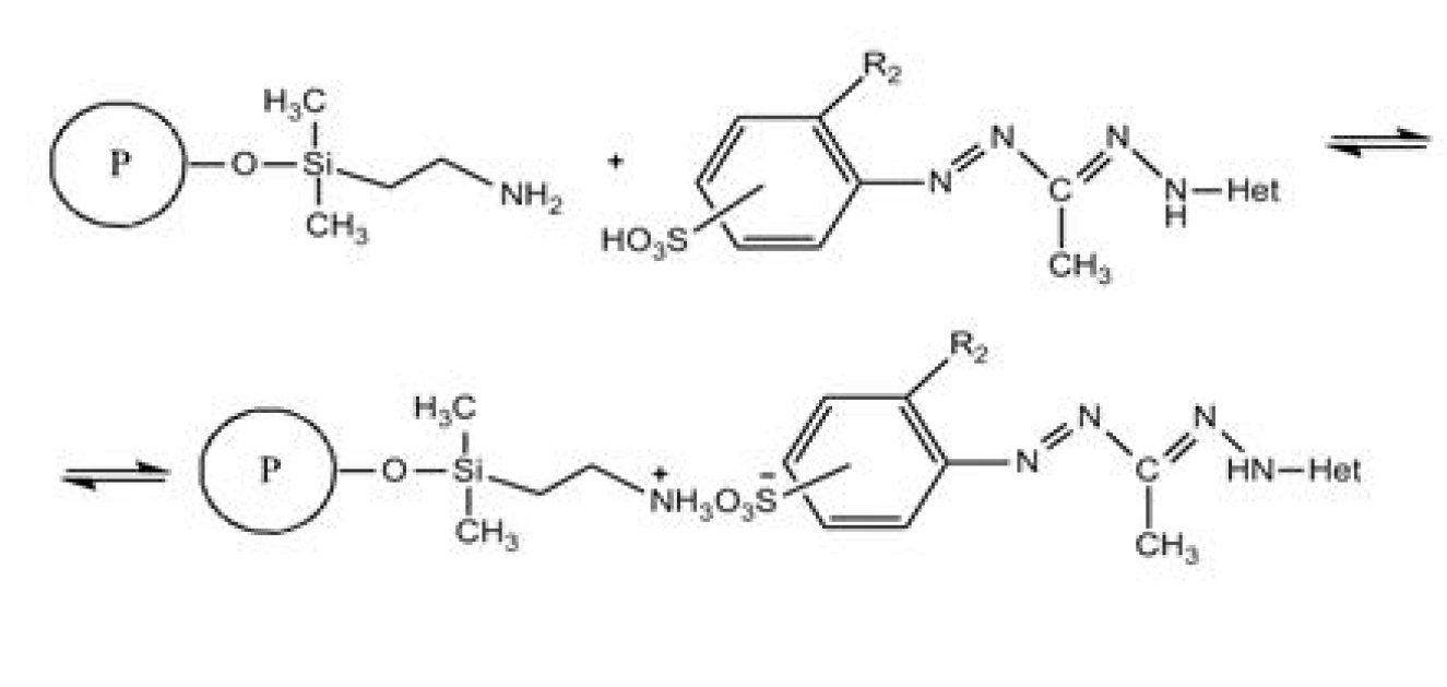 Схема 2. Ионный механизм закрепления формазановых группировок на силикагель ДИАСОРБ-100ТА