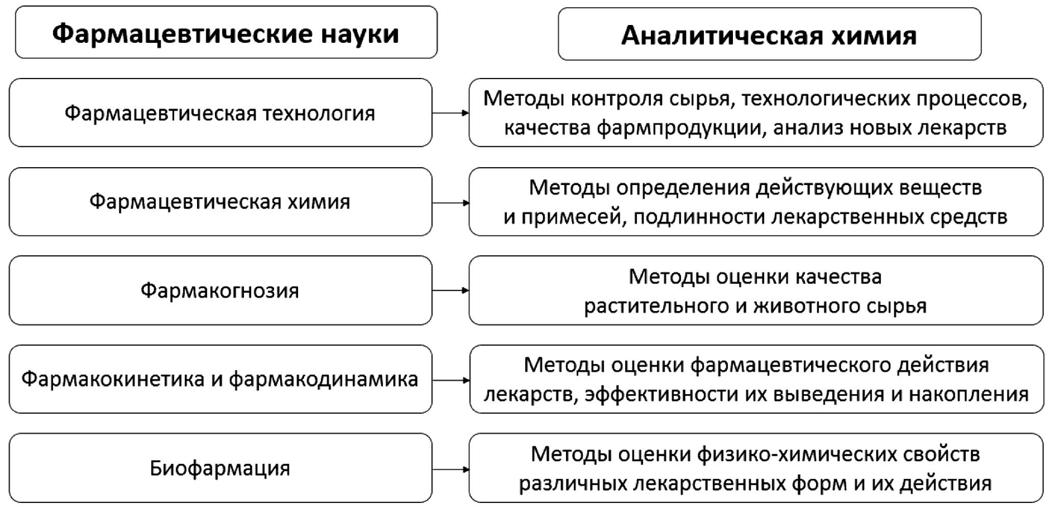 Рис. 1. Связь аналитической химии с фармацевтическими науками.
