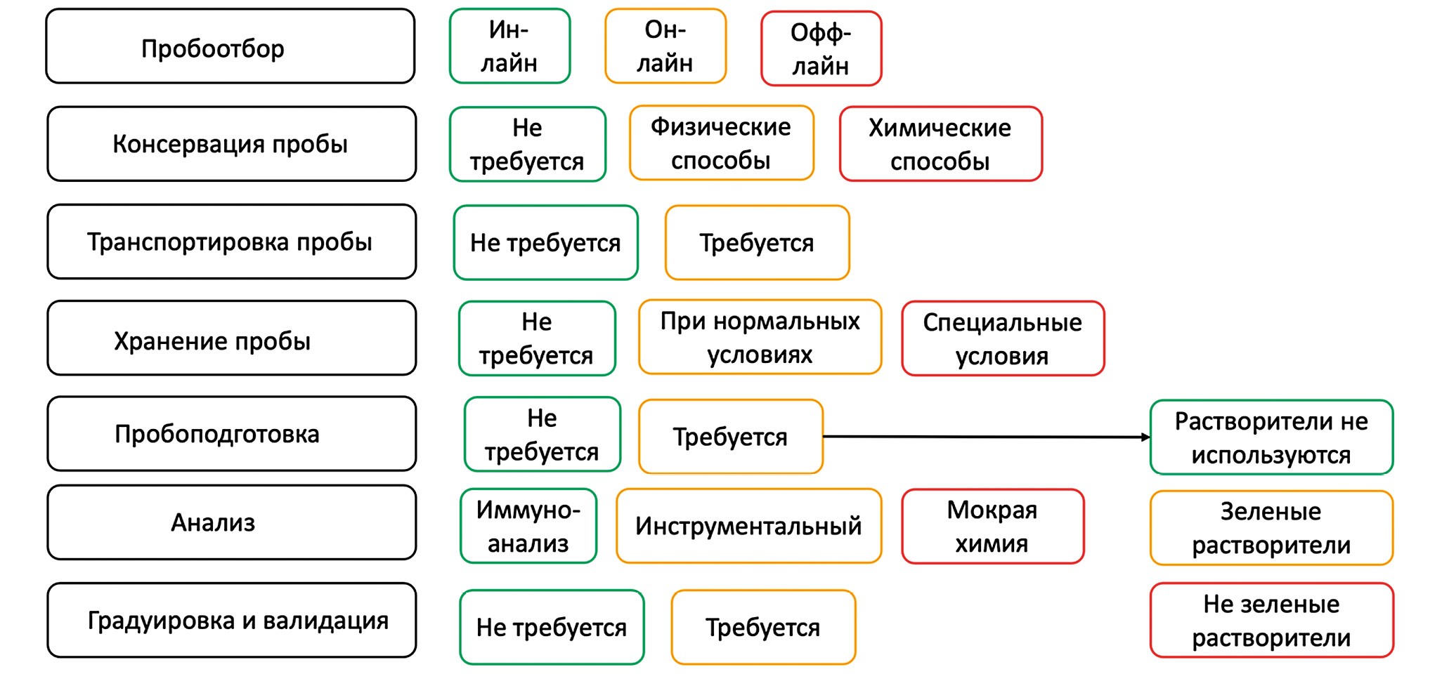 Потребляемая энергия | Низкое потребление (титрование) | Среднее потребление (ГХ, ВЭЖХ) | Высокое потребление (ГХ-МС) |