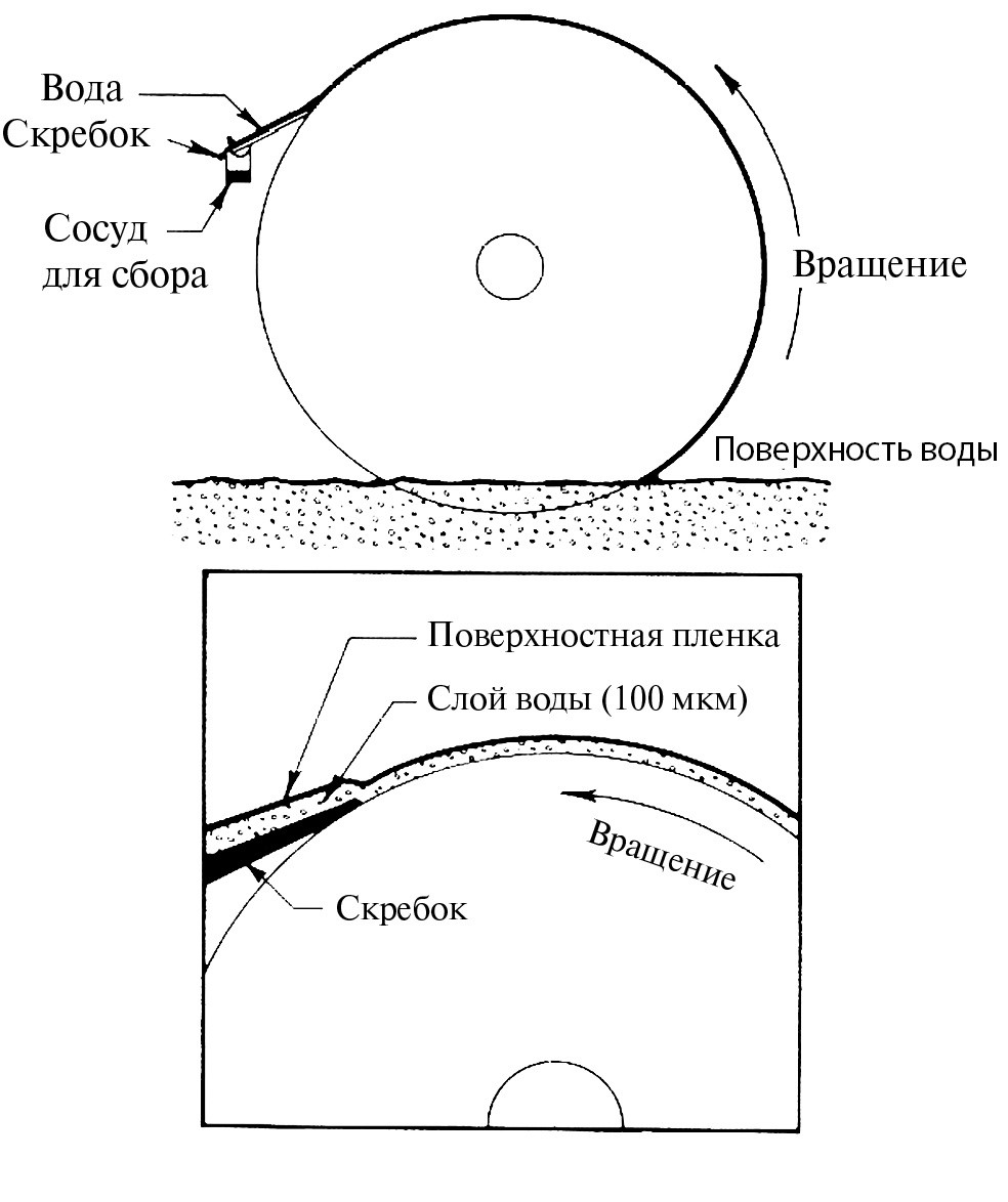 Поскольку некоторые микропластики (например, ПЭ и ПП) имеют плотность ниже, чем плотность воды, они могут концентрироваться на ее поверхности. Для отбора поверхностного слоя воды (около 60 мкм) используется специальное устройство (рис. 2), представляющее собой вращающийся барабан, который касается поверхности воды и за счет сил поверхностного натяжения отбирает тонкую пленку с поверхности воды [74]. Однако данное устройство можно эффективно использовать только в безветренную погоду [74]. Данным способом отобраны микрочастицы ПЭ, ПП и ПС из поверхностного микрослоя морской воды в прибрежной зоне Сингапура [75].