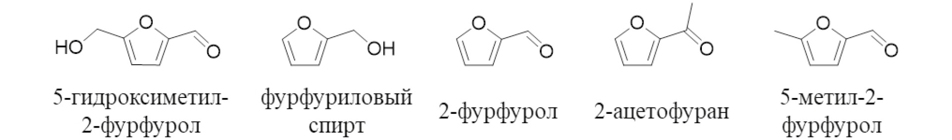 Параметр | 5-Гидроксиметил-2-фурфурол | Фурфуриловый спирт | 2-Фурфурол | 2-Ацетофуран | 5-Метил-2-фурфурол |