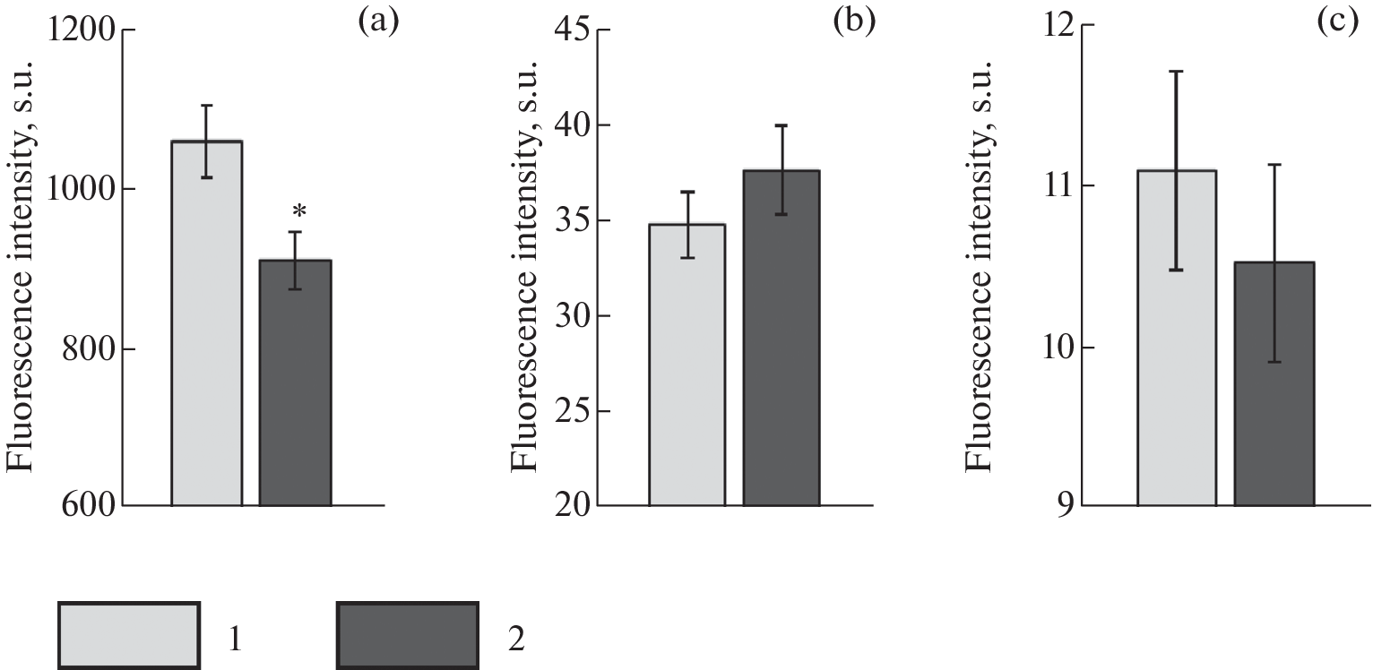 The in vitro effect of cold shock on erythrocytes of the benthic scorpionfish Scorpaena porcus L. was studied. The blood samples were exposed to 22°С (control group) and 4°С (experimental group) for 3 hours. Cold shock had no significant impact on erythrocyte scorpionfish vital function. The cells maintained the integrity of cytoplasmic membranes, mitochondrial potential and the level of oxidative processes, that the constant values of Propidium Iodide (PI), Rhodamine 123 (R123) and 2',7'-Dichlorodihydrofluorescein diacetate (DCF-DA) fluorescence levels demonstrated. Main changes referred to erythrocyte shape and nucleus functional activity. Cells gained more roundish shape, nucleus size increased with the growth of the nuclear-cytoplasmic ratio (NCR) and the decrease of fluorescence intensity of the cells labeled with SYBR Green I. It appears to be related to the activation of transcriptomic processes.