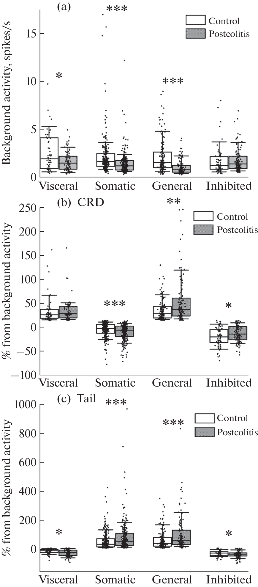 - Lyubashina OA, Sivachenko IB, Sokolov AY (2019) Differential responses of neurons in the rat caudal ventrolateral medulla to visceral and somatic noxious stimuli and their alterations in colitis. Brain Res Bull 152:299–310. https://doi.org/10.1016/j.brainresbull.2019.07.030