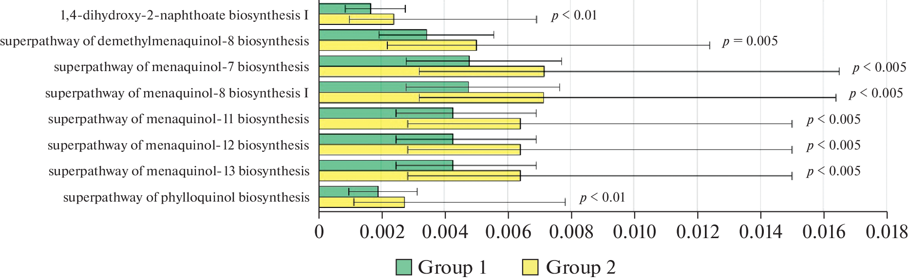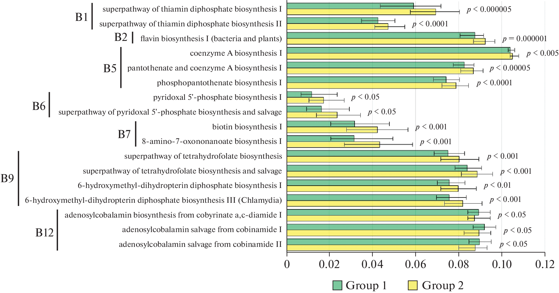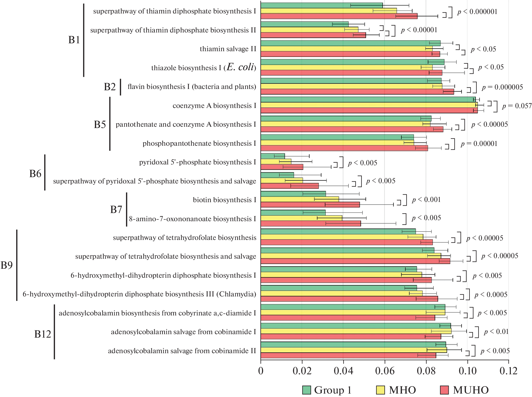 Прогнозируемая представленность метаболических путей синтеза витаминов и короткоцепочечных жирных кислот при ожирении у взрослых