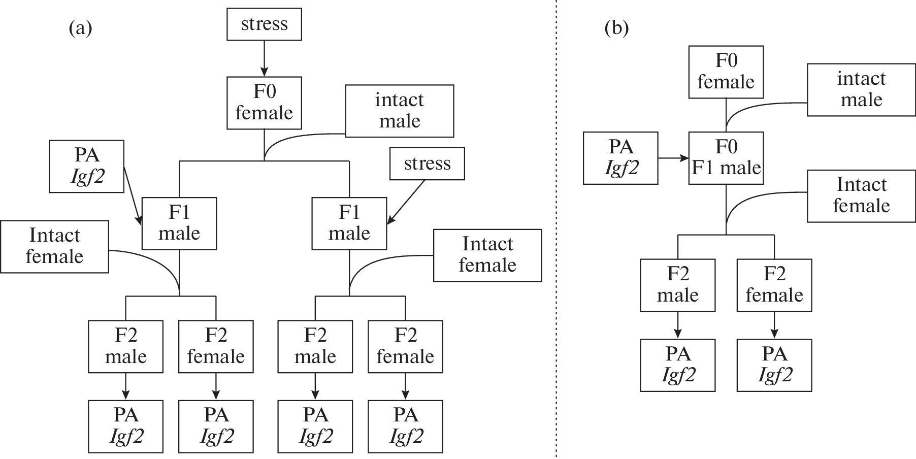 - Ordyan NE, Malysheva OV, Holova GI, Akulova VK, Pivina SG (2022) Sex-Dependent Effects of Stress in Male Rats on Memory and Expression of the Insulin-Like Growth Factor 2 Receptor Gene in the Brains of Offspring. Neurosci Behav Physiol 52: 242–250. https://doi.org/10.1007/s11055-021-01079-1