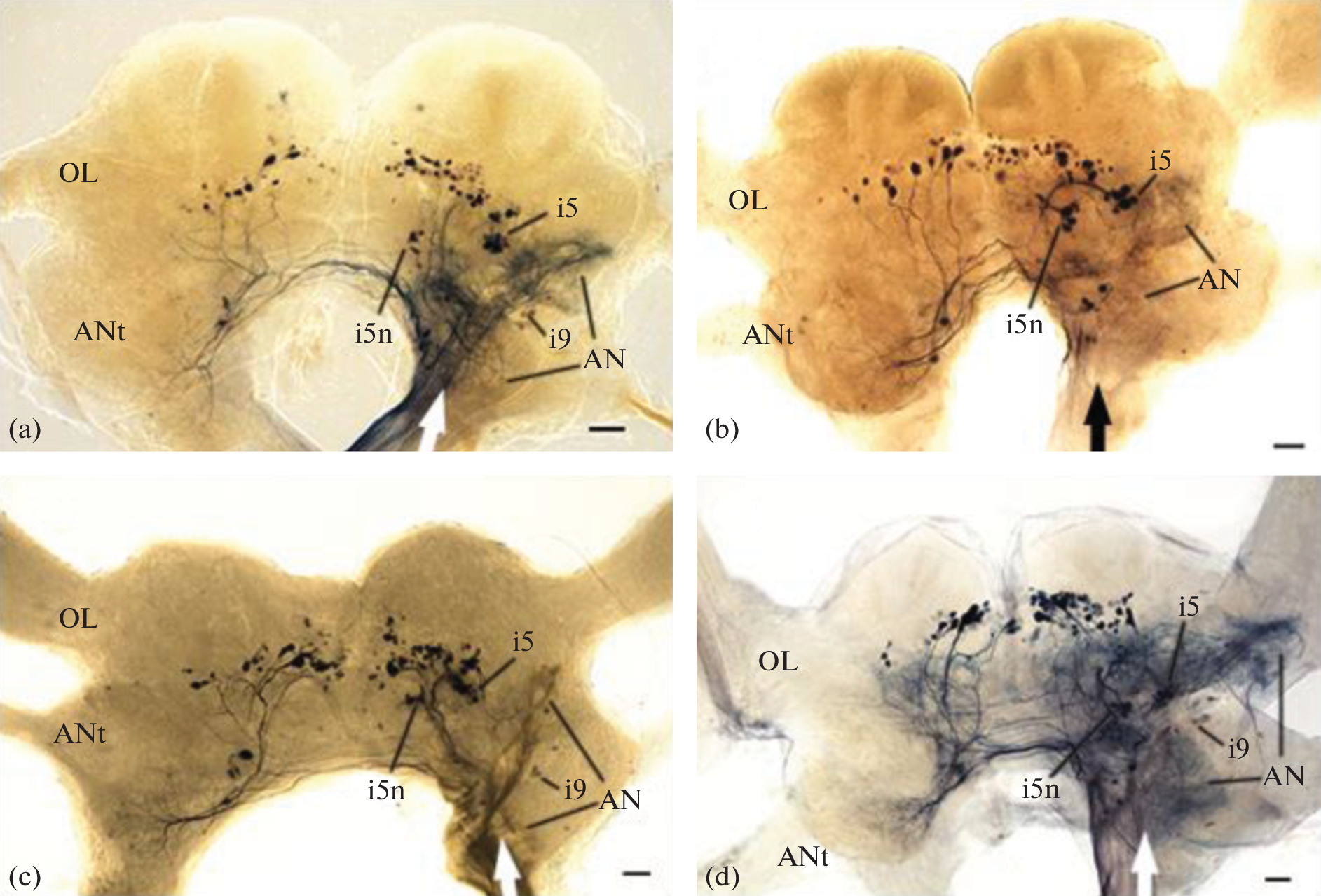 - Schöneich S, Schildberger K, Stevenson PA (2011) Neuronal organization of a fast-mediating cephalothoracic pathway for antennal tactile information in the cricket (Gryllus bimaculatus DeGeer). J Comp Neurol 519 (9): 1677–1690. https://doi.org/10.1002/cne.22594