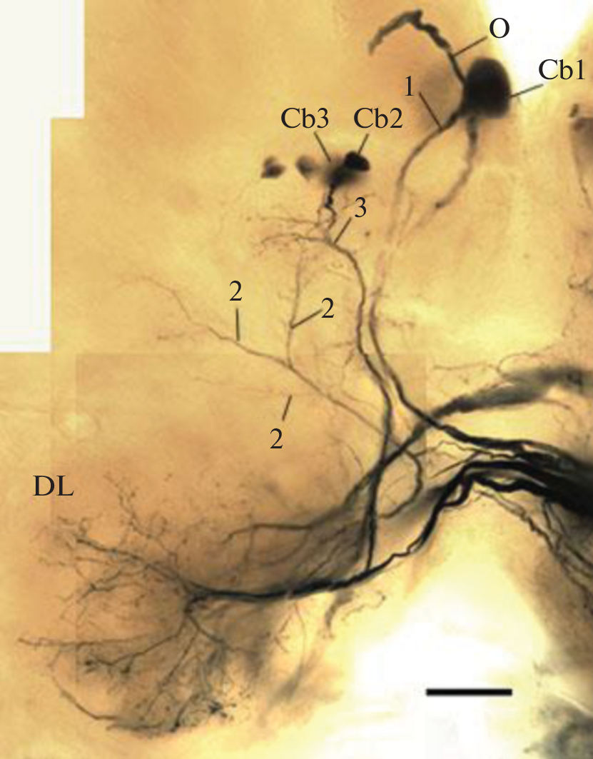 - Kononenko NL, Hartfil S, Willer J, Ferch J, Wolfenberg H, Pflüger HJ (2019) A population of descending tyraminergic/octopaminergic projection neurons of the insect deutocerebrum. J Comp Neurol 527 (6): 1027–1038. https://doi.org/10.1002/cne.24583