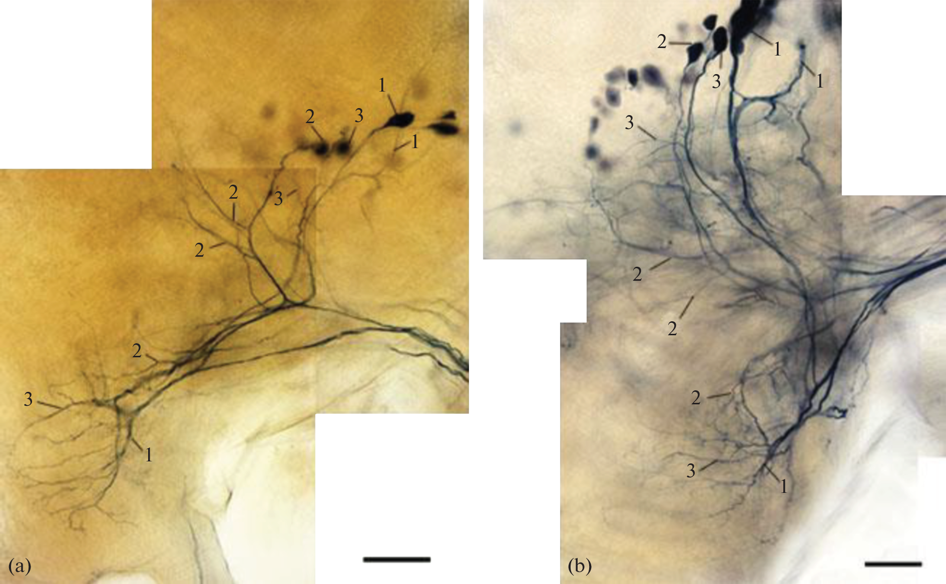 - Северина ИЮ, Исавнина ИЛ, Князев АН (2016) Топография восходящих и нисходящих нейронов надглоточного, мезо- и метаторакальных ганглиев у древне- и новокрылых насекомых. Ж эвол биохим и физиол 52 (5): 362–369. [Severina IYu, Isavnina IL, Knyazev AN (2016) Topographic anatomy of ascending and descending neurons of the supraesophageal, meso- and metathoracic ganglia in paleo- and neopterous insects. J Evol Biochem Phys 52 (5): 397–406. (In Russ)]. https://doi.org/10.1134/S0022093016050082