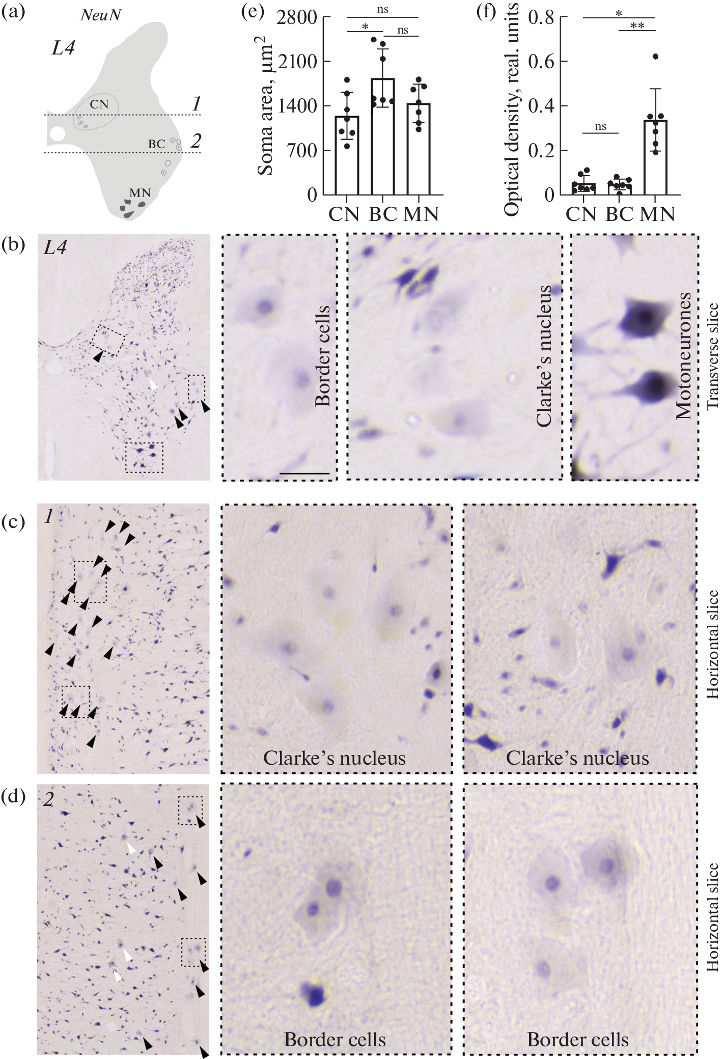 - Merkul’eva NS, Veshchitskii AA, Shkorbatova PYu, Shenkman BS, Musienko PE, Makarov FN (2017) Morphometric characteristics of the dorsal nuclei of Clarke in the rostral segments of the lumbar part of the spinal cord on cats. Neurosci Behav Physiol 47: 851–856. https://doi.org/10.1007/s11055-017-0481-4