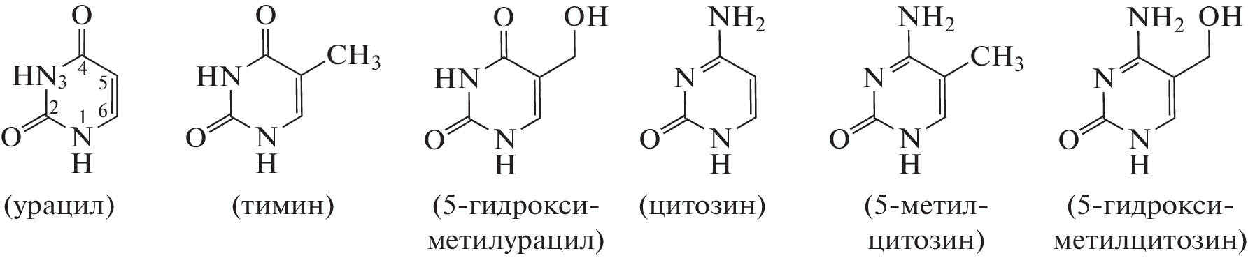 Resonant Capture of Electrons by Molecules of Uracile, Cytosene, and Their 5-Methyl- and 5-Hydroxymethyl Derivatives
