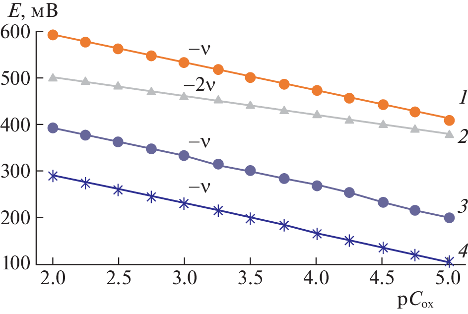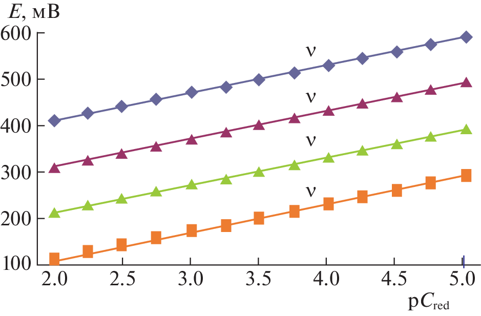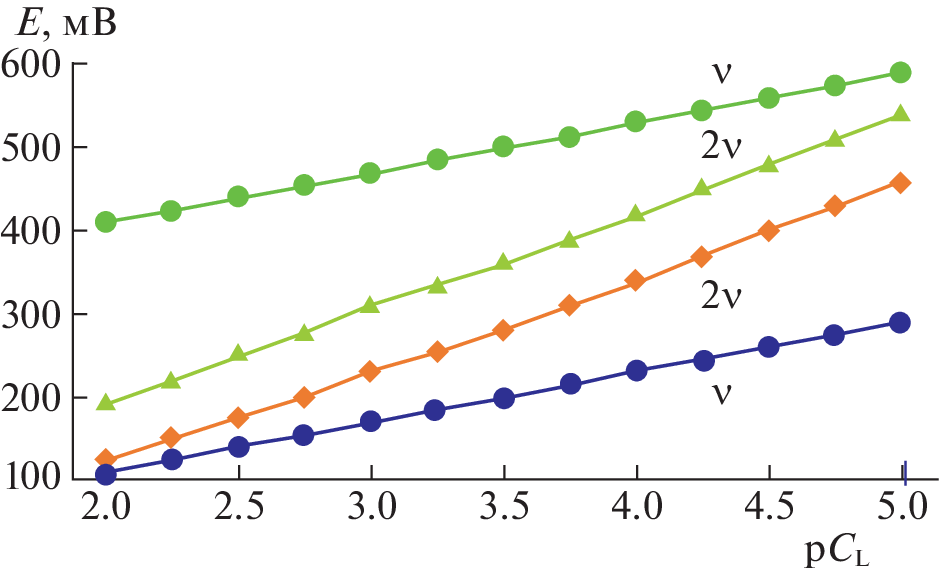The Clark–Nikolsky oxidation potential is used to study the formation of iron(II) and iron(III) coordination compounds in aqueous solutions of α-alanine at a temperature of 298.15 K and an ionic strength of the (Na(H)ClO4) solution of 1.0 mol/L. Experimental curves of dependences of the EMF of the system on the concentration parameters of hydrogen, iron(III), iron(II), and α-alanine ions (pH, рСох, рСred, and pCL, respectively) are recorded. The curves show that complexation in the studied system proceeds stepwise in the wide range of pH 0.5–9.0. Mononuclear coordination compounds [FeHL(H2O)5]3+, [Fe(HL)2(H2O)4]3+, [Fe2(HL)2(OH)4(H2O)6]2+, [FeHL(H2O)5]2+, [Fe(HL)(OH)(H2O)4]+, and [Fe(HL)(OH)2(H2O)3]0 and a heterovalent [FeIIFeIII(HL)2(OH)4(H2O)6]+ complex form. The type and number of coordinated ligands and cations and the total composition of the resulting complex compounds are determined. Chemical models complexation are compiled, and the regions of their dominance are determined.