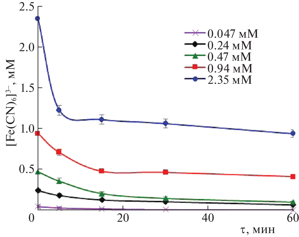 }) and hydrogen peroxide (oxidizing system {UV/H2O2}) under the influence of quasi-monochromatic UVC radiation from a KrCl excilamp (222 nm) have been studied. According to the efficiency and rate of the destruction of the target compound, the oxidizing systems under study can be arranged in the following series: {UV/S2O2-8} > {UV/H2O2} > {UV}. The effective destruction of hexacyanoferrates at micromolar concentrations (≤47 μM) to nontoxic and biodegradable compounds in the combined {UV/S2O2-8} system is due to the high oxidizing ability of reactive oxygen species formed as a result of persulfate photolysis.