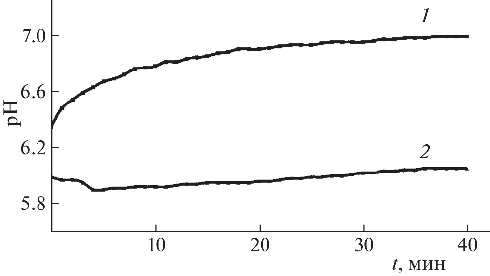 The photochemical reduction of water with cadmium sulfide suspensions containing mixtures of sodium sulfite and formic and acetic acid solutions has been studied by electromotive force measurements and gasometry. The sulfite ions are oxidized on the anode in the sulfite–acetate suspensions; the sulfite ions and formic acid, in the sulfite–formate solutions. Hydrogen peroxide was found among the products of the photochemical reaction; it is involved in the oxidation of the radicals of sulfite ions and molecular sulfur of CdS particles and prevents the reduction of water.