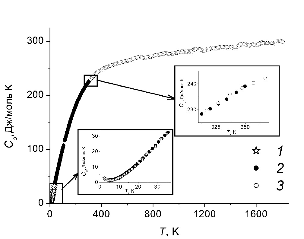 В работе [14] для измерений высокотемпературной теплоемкости в интервале 320–1300 K использовали установку синхронного термического анализа DSC 404 F1 Jupiter® фирмы Netzsch и был получен результат:
