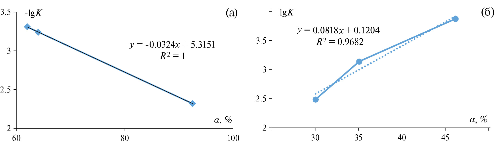 где ΔGh − свободная энергия гидратации аниона; lgKo− константа экстракции кислоты для данного разбавителя, анион которой принят за эталон (ΔGh = 0); b − коэффициент чувствительности, постоянный для серии экстракционных систем, различающихся только природой аниона, и зависящий от сольватирующей способности растворителя [7].
