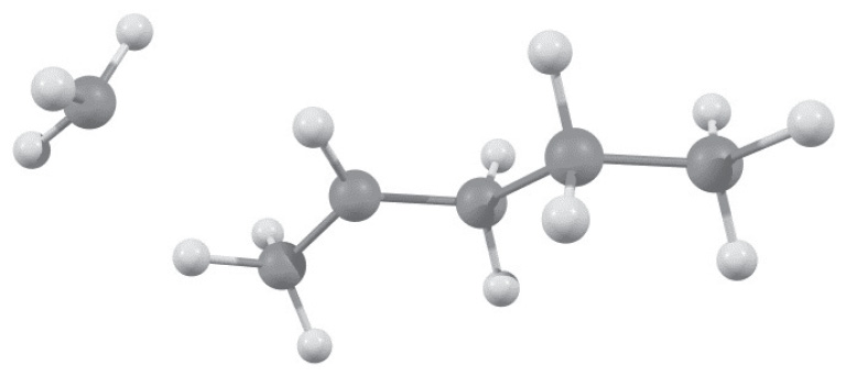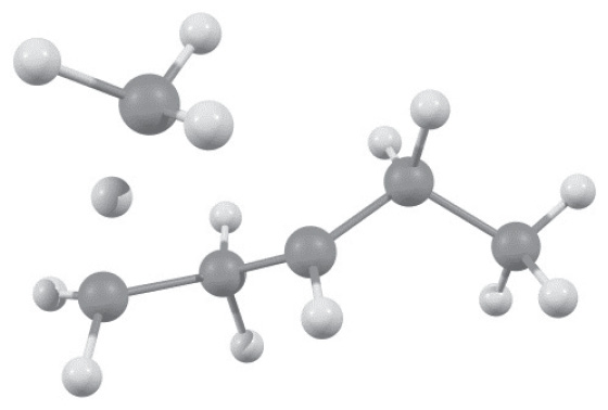 E0 = -707.083653 а.е. q = -1, M = 2 ∆E = 8.5 ккал/моль | (C6H13) = 0.1385; = 0.86148 E0 = -706.781059 а.е. q = 1, M = 2 |