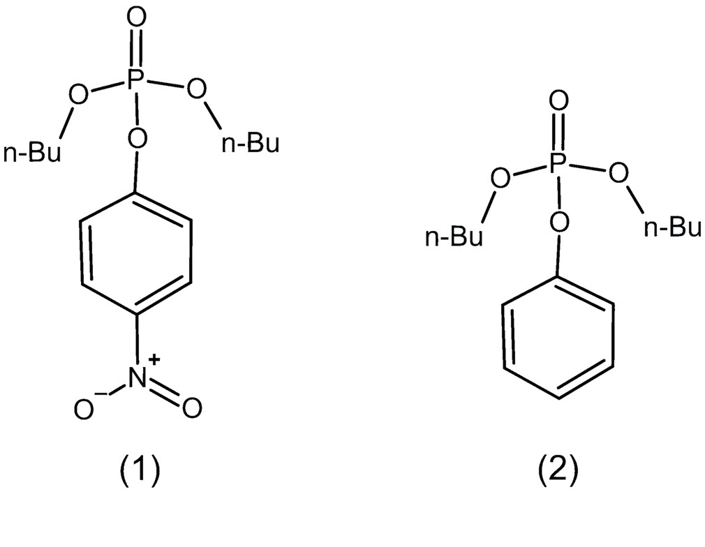 Рис. 1. Структуры субстратов: дибутил-4-нитрофенилфосфат (а) с хорошей уходящей группой и дибутилфенилфосфат (б) с плохой уходящей группой