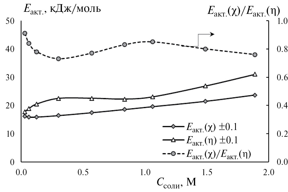 Еакт(χ)/Еакт(η) | 0.91 | 0.84 | 0.78 | 0.73 | 0.77 | 0.83 | 0.85 | 0.80 | 0.76 |