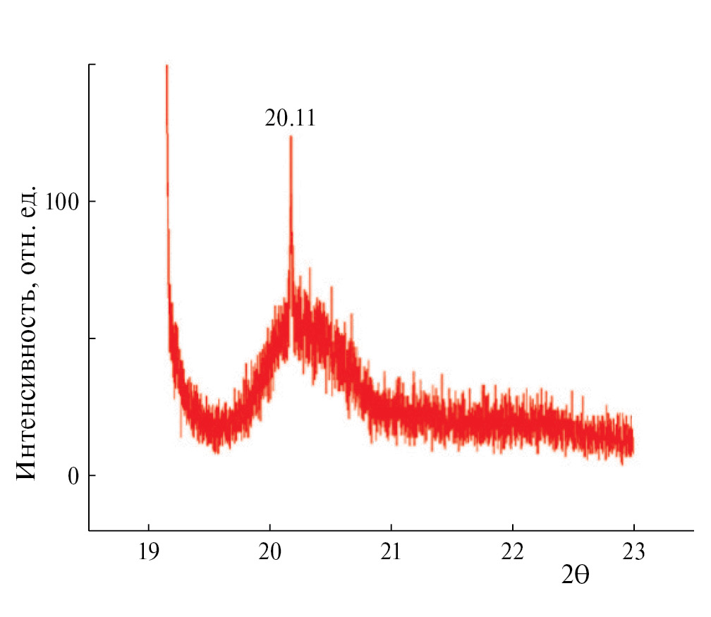 На рис. 3 приведена дифрактрограмма (XRD) наночастиц, полученных лазерной абляцией в чистом этаноле и высушенных на стеклянной подложке в вакуумной сушилке. В качестве источника излучения были использованы CuKα, λ=1.544178 A0 SSFOM: F17-610.0.5.10.60. Показано, что рефлекс (004) под 2θ с углом 20.110 соответствует гексагональной структуре объемного кристалла GaSe, что подтверждает кристаллическую структуру синтезированных наночастиц, такую же, как и у объемного материала.