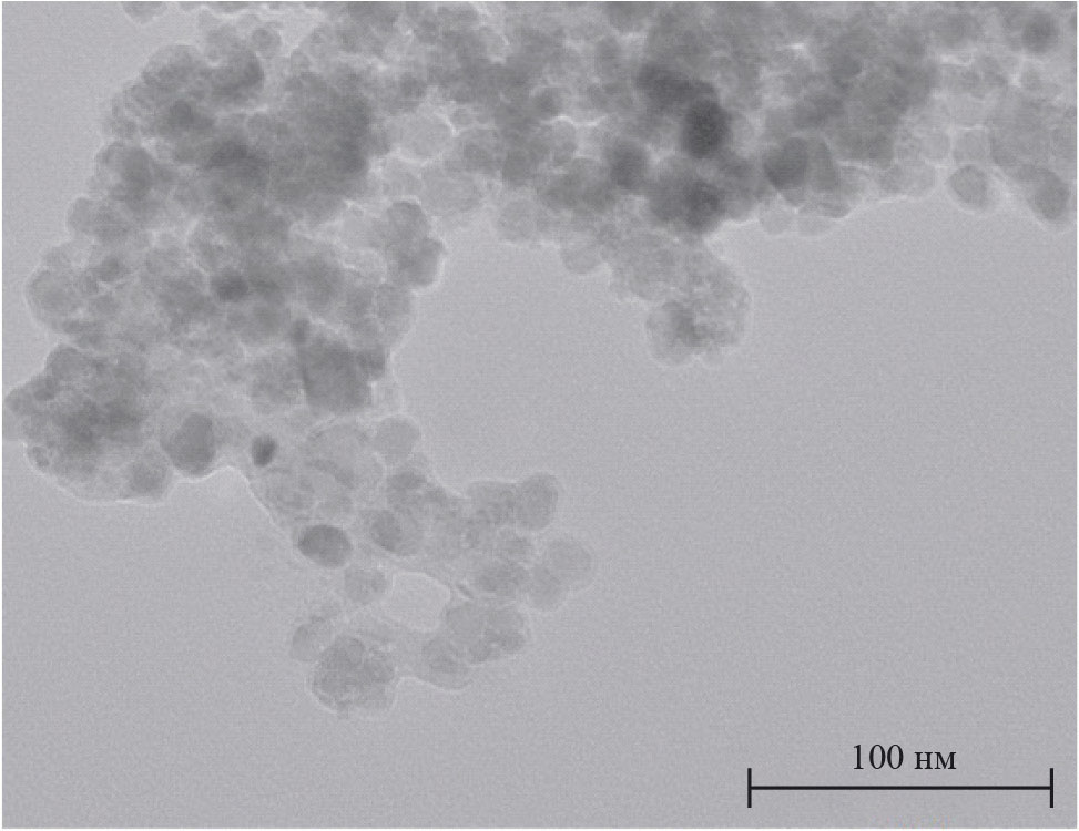 Рис. 5. Микрофотография ПЭМ нанокомпозита Fe3O4@NFC