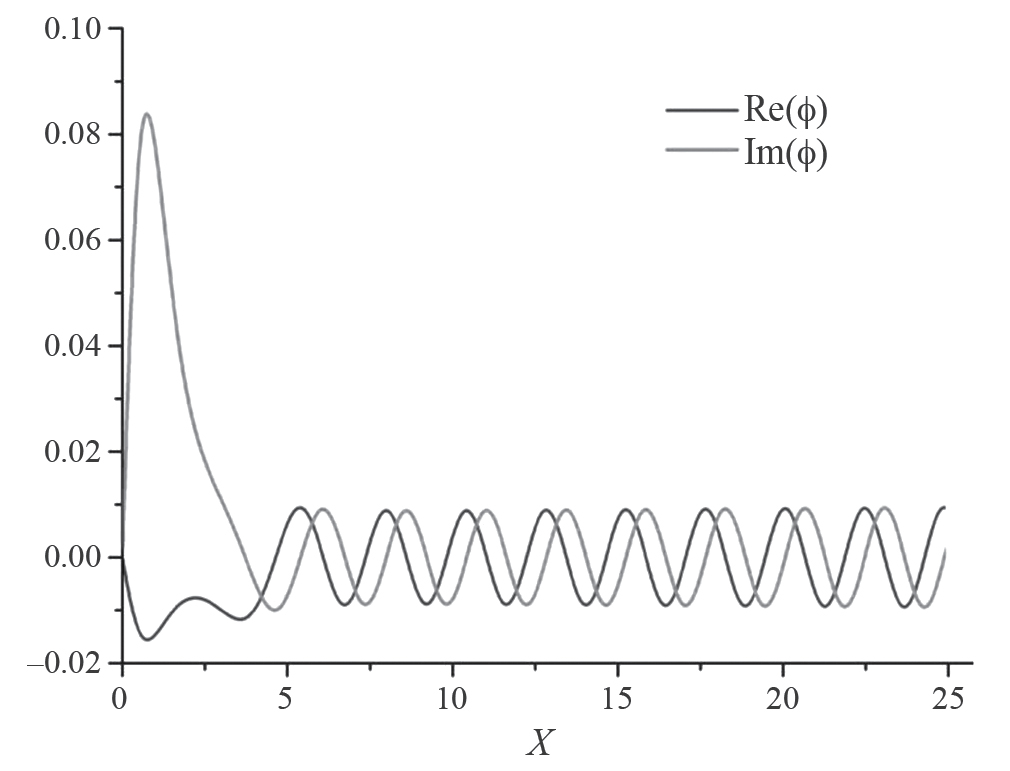 Для заданного начального состояния a(t0)=a0 и b(t0)= 0 с использованием техники разделения и представления взаимодействия, приходим к следующему соотношению (при этом с корректным учетом краевых эффектов, т. е. обеспечив подавление отражений эволюционирующего волнового пакета от правой границы сетки численного интегрирования) [10]: