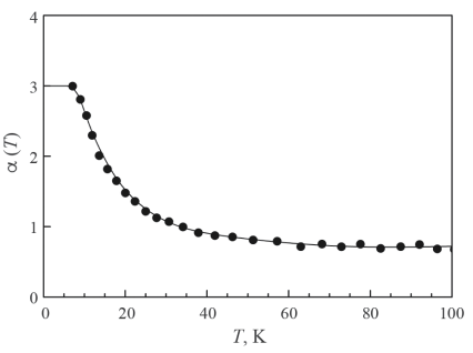 На рис. 3 представлена зависимость α(T), которая вычислялась по формуле [13]: