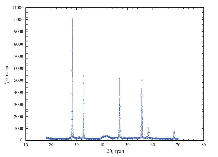 Дифрактограмма образца Bi1.6Er0.4O3 приведена на рис. 1.