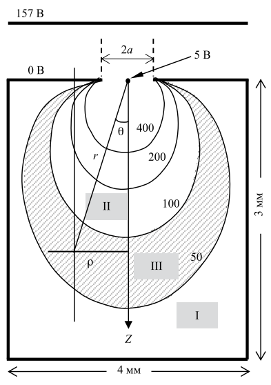 В силу особенностей конфигурации ЭЯ отбор ионов из различных ее областей имеет разный характер. Вблизи краев ЭО плазма полностью разрушена, и отбор ионов происходит как с открытой поверхности, а из удаленных от ЭО областей – как из плазмы. Отметим, что это давно обнаружено при изучении электронной эмиссии полых катодов [23].