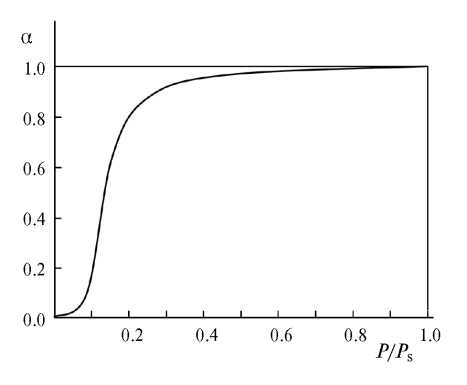 Рис. 2. Зависимость α(P/Ps).