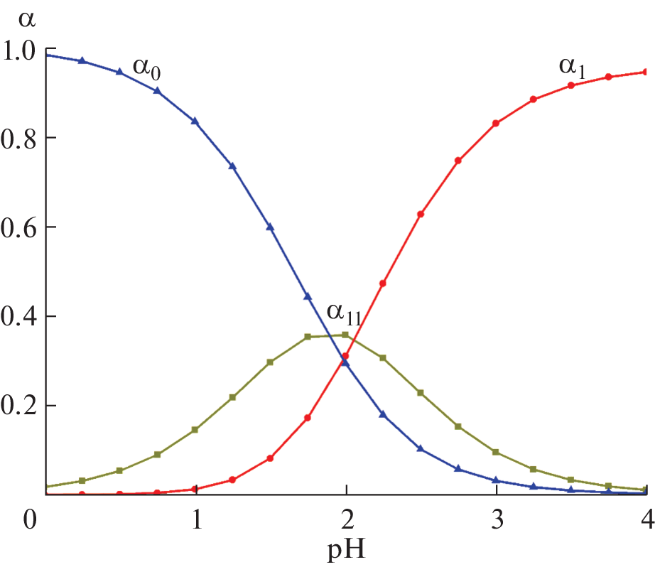Complexation in systems containing iron(III) chloride and barbituric (H2BA) or 2-thiobarbituric (H2TBA) acid has been studied by spectrophotometry and pH-metry in the pH range of 1.3–3.3 (I = 0.1 (NaCl), t = 20°C). The presence of 1 : 1 complexes with mono- and deprotonated forms of the ligand has been established, and their stability constants (in log units) have been determined: 1[FeHBA]2+ (3.49 ± 0.15), [FeHTBA]2+ (2.69 ± 0.07), [FeBA]+ (12.22 ± 0.13), and [FeTBA]+ (11.05 ± 0.08). It has been shown that the higher thermodynamic stability of barbiturate complexes compared to 2-thiobarbiturate ones is due to the greater basicity of the barbiturate anion. Based on the stability constants obtained, it has been proposed to use orthophosphate, fluoride, and ethylenediaminetetraacetate ions to eliminate the interfering effect of iron(III) in the determination of malondialdehyde by the thiobarbiturate method. Orthophosphoric acid is the most convenient for practical applications, as it makes it possible to mask iron(III) and to create a strongly acidic medium necessary for the formation of a colored malondialdehyde–H2TBA adduct.
