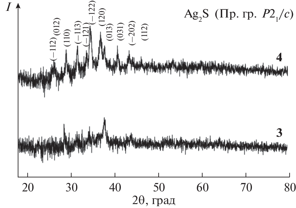 Гидрохимическим методом в низкоконцентрированных водных растворах нитрата серебра, сульфида натрия и цитрата натрия синтезированы стабильные коллоидные растворы квантовых точек сульфида серебра Ag2S разного размера. Размер квантовых точек Ag2S, определенный методом динамического рассеяния света, составляет от 2–3 до 28–30 нм. Большая отрицательная величина измеренного ζ-потенциала коллоидных растворов и малое изменение ζ-потенциала и размера квантовых точек при длительном хранении растворов свидетельствуют об их временнóй стабильности.