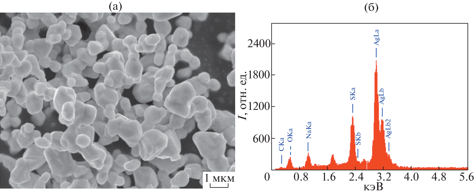 Silver sulfide powders with submicro- and micrometer particle sizes have been synthesized by the hydrothermal method at temperatures from 373 to 453 K in aqueous and alcoholic solutions of silver nitrate, sodium sulfide and citrate, sulfur, and thiocarbamide. The crystal structures of the synthesized powders, morphology, composition, and particle size of silver sulfide have been analyzed by X-ray diffraction, scanning electron microscopy, energy-dispersive X-ray analysis, and gas adsorption. The powder particles have a similar morphology in the form of rectangular parallelepipeds and cubes with smoothed edges; the size of the powder particles depends on the synthesis conditions and ranges from ~500 to 2000 nm.