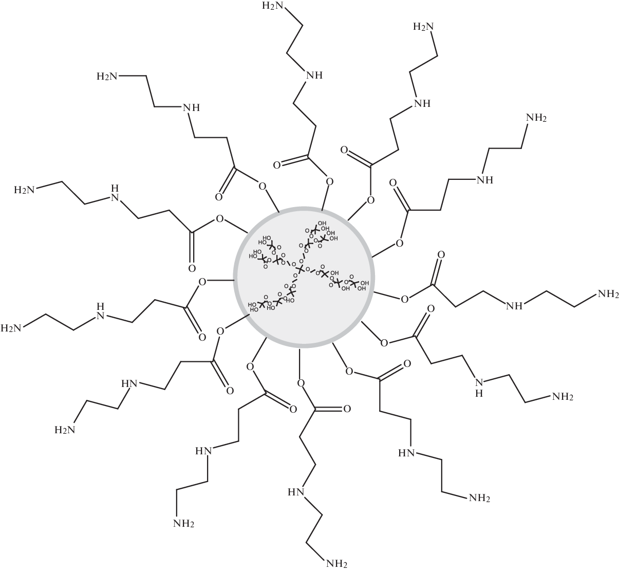 A procedure was developed for the single-step synthesis of a metal–polymer nanocomposite based on silver nanoparticles and second-pseudogeneration superbranched polyester functionalized along the periphery with 3-[(2-aminoethyl)amino]propionate. Under the conditions of the synthesis in the medium of H2O or DMSO, hyperbranched polyester decorated with ethylenediamine moieties can act as both a reductant of the nanoscale silver state and a stabilizer of it. The synthesized composite nanomaterial is formed by aggregates of hyperbranched polyester polyamine doped with Ag(0) nanoclusters and nanoparticles of spheroidal symmetry with a face-centered cubic crystal lattice. The hydrodynamic diameter of aggregates and the diameter of particles increase with increasing molar ratio