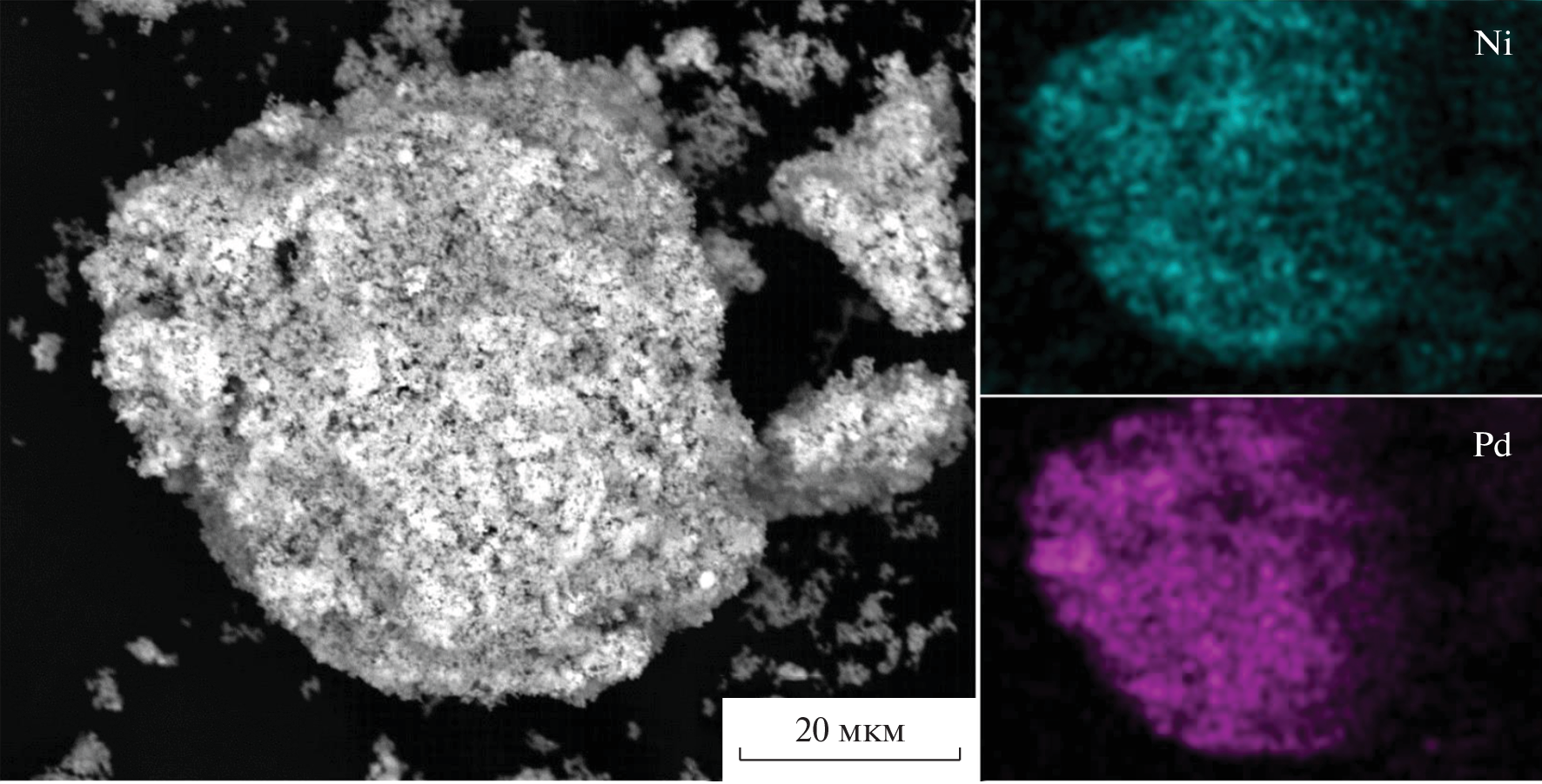 The processes of contact reaction of nickel metal powders with aggregated particle sizes of 300–400 nm with aqueous solutions of palladium(II) in autoclaves at elevated temperatures in acidic and alkaline media have been studied. It has been found that when metallic nickel contacts with aqueous solutions of palladium(II) chloride in 0.01 M hydrochloric acid at temperatures of 100 and 130°C for 15 min, the concentration of divalent palladium ions decreases to zero. The process is accompanied by a partial transition of nickel into solution. The precipitates are a mixture of metallic particles of nickel and palladium of variable compositions. In the case of contact of metallic nickel with solutions of tetraammine palladium(II) chloride at temperatures of 160 and 170°C in a medium of 0.1 M potassium hydroxide, metal palladium particles 5–25 nm in size are formed on the surface of larger nickel particles. The structure of bimetallic particles has been determined by X-ray photoelectron microscopy.