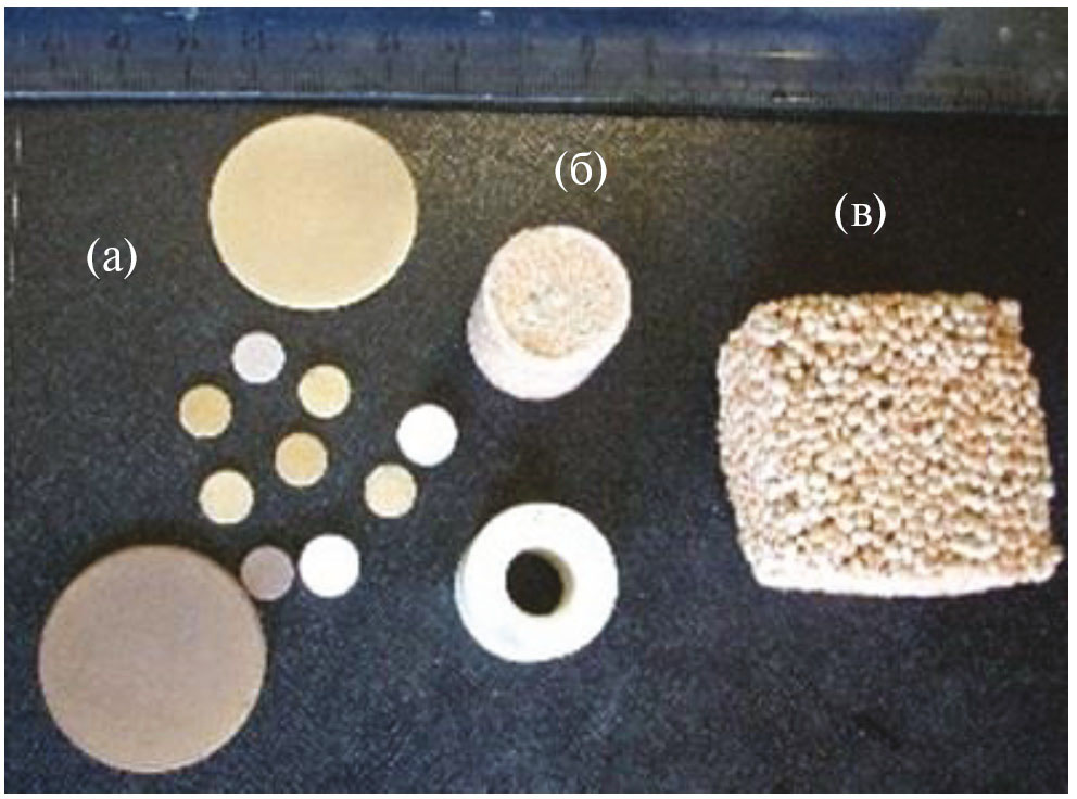 Основными недостатками первого и второго поколений сорбирующих материалов в виде гранул являются высокая истираемость материала при работе в динамическом режиме и в условиях вибрационных нагрузок и плохая теплопроводность слоя, приводящая к затруднению десорбции при нагреве. Устранить эти недостатки можно путем создания блочных сорбентов, которые относятся к третьему поколению сорбирующих материалов [14]. Блочными сорбирующими материалами являются порошкообразные и зерненые адсорбенты, сформованные в блоки или таблетки со связующим. Основное применение блочные сорбирующие материалы нашли как осушающие патроны в холодильной технике, электроизмерительных устройствах, оптических приборах, адсорбционных холодильных установках, в процессах короткоцикловой безнагревной адсорбции (КБА) [13, 15–18]. На рис. 1 показаны таблетированные блочные сорбенты на основе гранулированных и порошкообразных цеолитов [2].