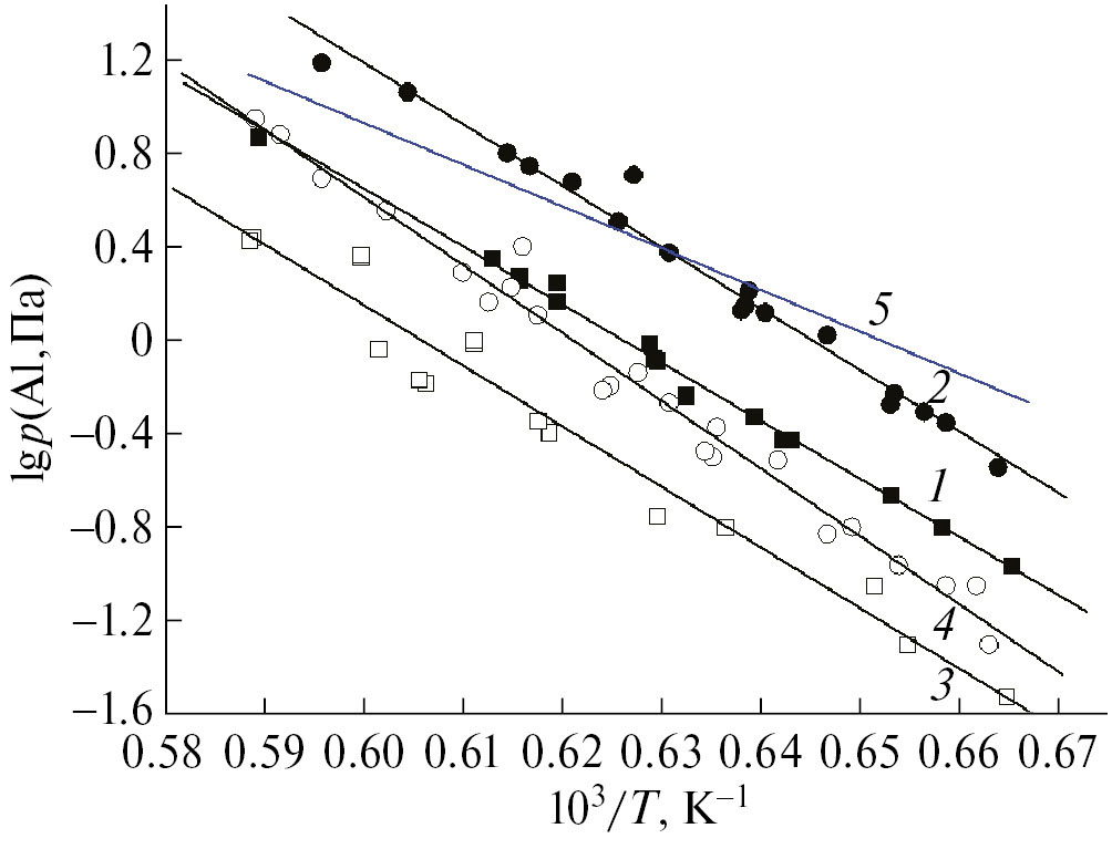 где p(Al) – парциальное давление молекулярной формы пара i, T – абсолютная температура.