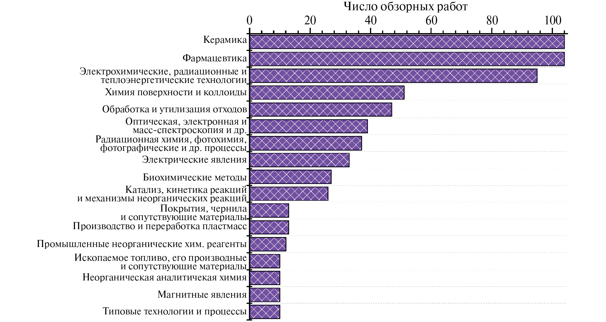 Рис. 1. Секции классификатора Chemical Abstracts, к которым отнесены недавние обзорные работы по золь-гель процессам (с 2015 г.), по данным CAS SciFindern, январь 2024 г.