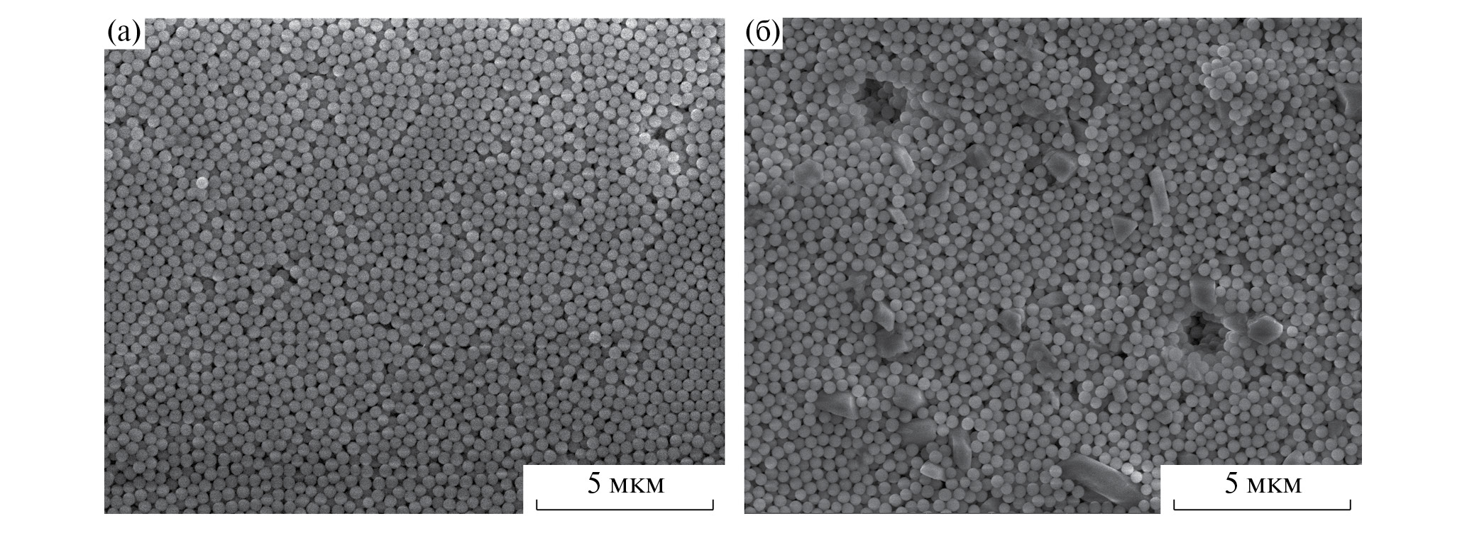Синтез наночастиц кремнезема SiO2 проводили по классической методике Штобера [25, 26]. Смесь из 7.5 моль H2O и 0.5 моль NH3 в этаноле перемешивали в течение 15 мин. После добавления 0.25 моль ТЭОС раствор перемешивали в течение 24 ч. Осадок отделяли на центрифуге при 4000 об/мин, промывали этанолом 3 раза и высушивали в вакуумном сушильном шкафу при 80oC в течение 2 ч. Средний размер частиц, согласно данным сканирующей электронной микроскопии (СЭМ), составлял 320 нм.
