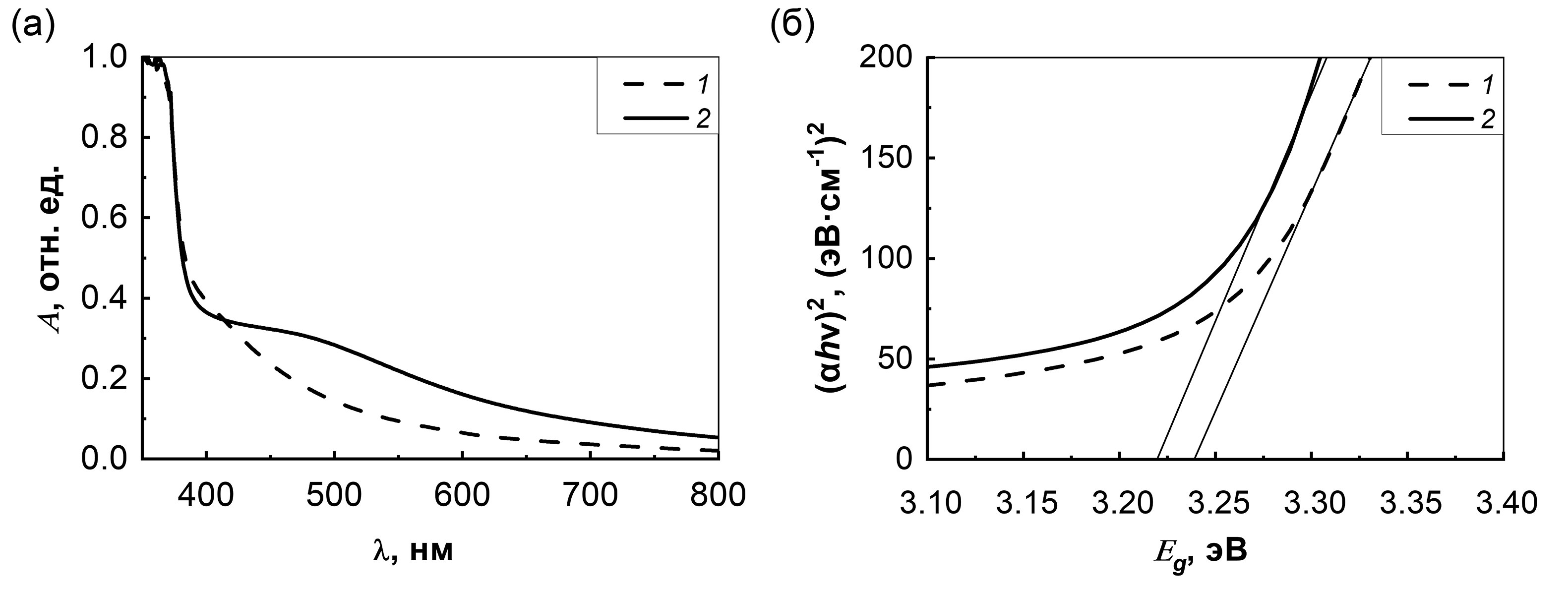 Спектры оптического поглощения представлены на рис. 4a. Оптическую ширину запрещенной зоны образцов оценивали с помощью уравнения Тауца в предположении, что это прямозонный полупроводник [37]: