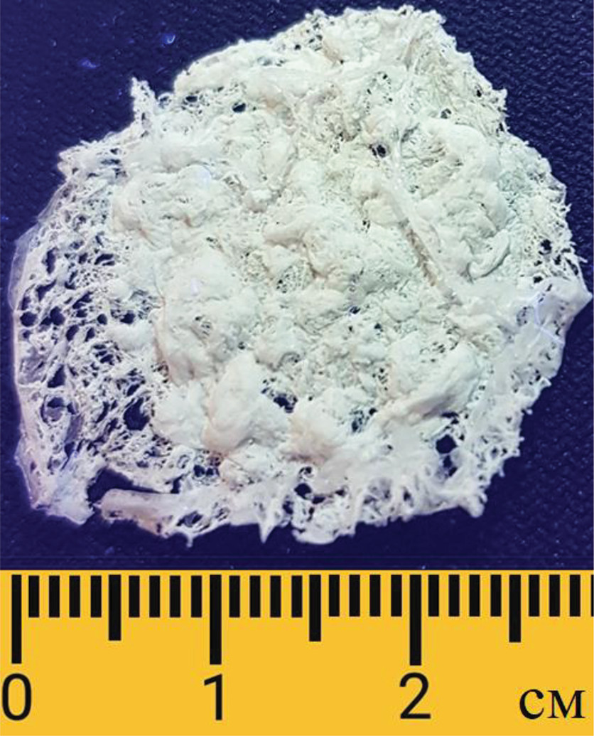 Рис. 1. Внешний вид экспериментального образца, сформированного из порошка PMMA без частиц полупроводника.