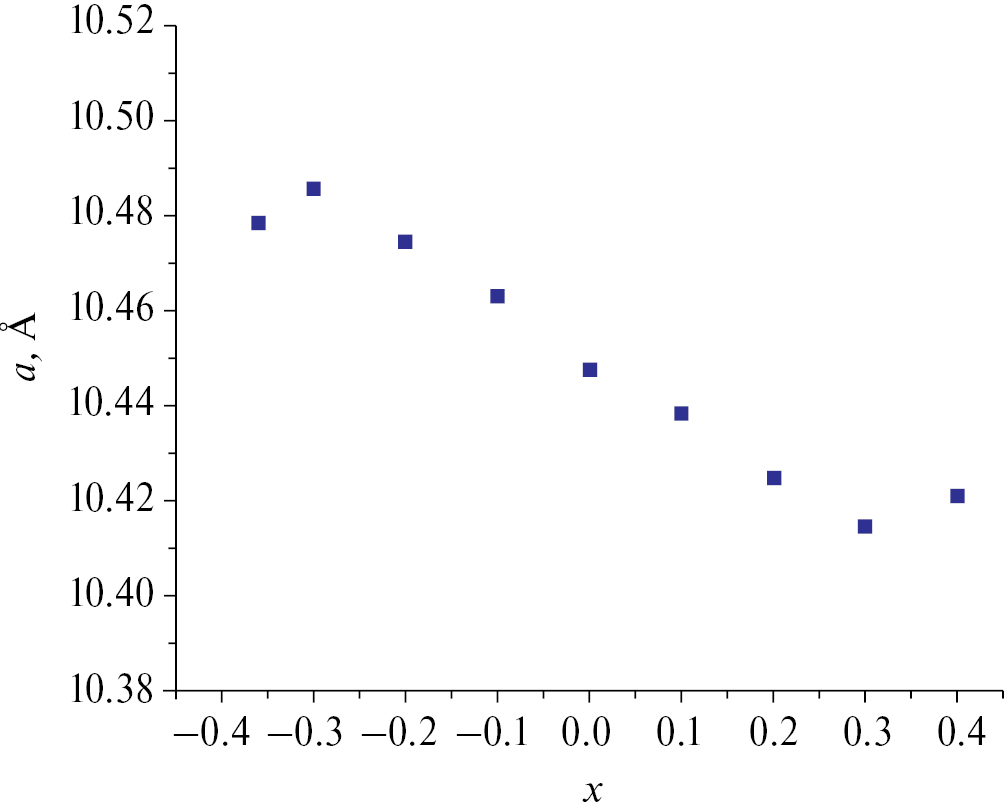 Анализ состава осадка, полученного в течение различного времени ГТ-обработки (табл. 1), дает возможность предположить механизм образования фазы пирохлора. На первом этапе синтеза образуются нанокристаллы твердого раствора на основе δ-Bi2O3 со структурой флюорита. С увеличением времени ГТ-обработки происходит перекристаллизация этой метастабильной фазы с образованием твердого раствора с увеличенным содержанием сурьмы и кобальта. Структура пирохлора является производной от флюорита [24], поэтому при достижении определенного соотношения крупных катионов висмута и меньших по размеру катионов сурьмы и кобальта структура пирохлора становится термодинамически более выгодной. Также известно, что для пирохлоров висмута сурьмы характерно существование широких областей твердых растворов, что объясняет изменение состава и параметров решетки синтезированного образца с увеличением времени обработки. Таким образом, показано, что для получения образцов заданного нами состава Bi1.5CoSb1.5O7 необходимо проведение ГТ-обработки в течение 24 ч.