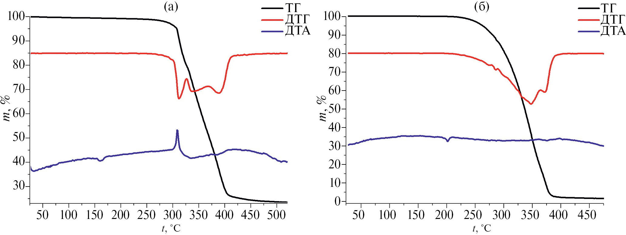 Термогравиметрический анализ (ТГА) выполняли на приборе TG 209 F1 Iris (Германия). Измерения проводили в потоке гелия в интервале температур 25–450°C при токе газа 60 мл/мин, скорости нагрева 10 град/мин в открытых алюминиевых тиглях.