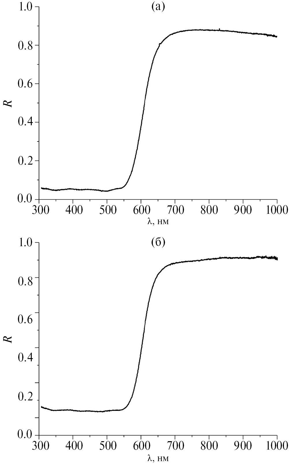 Рис. 6. Спектры диффузного отражения соединений 1 (а) и 2 (б).