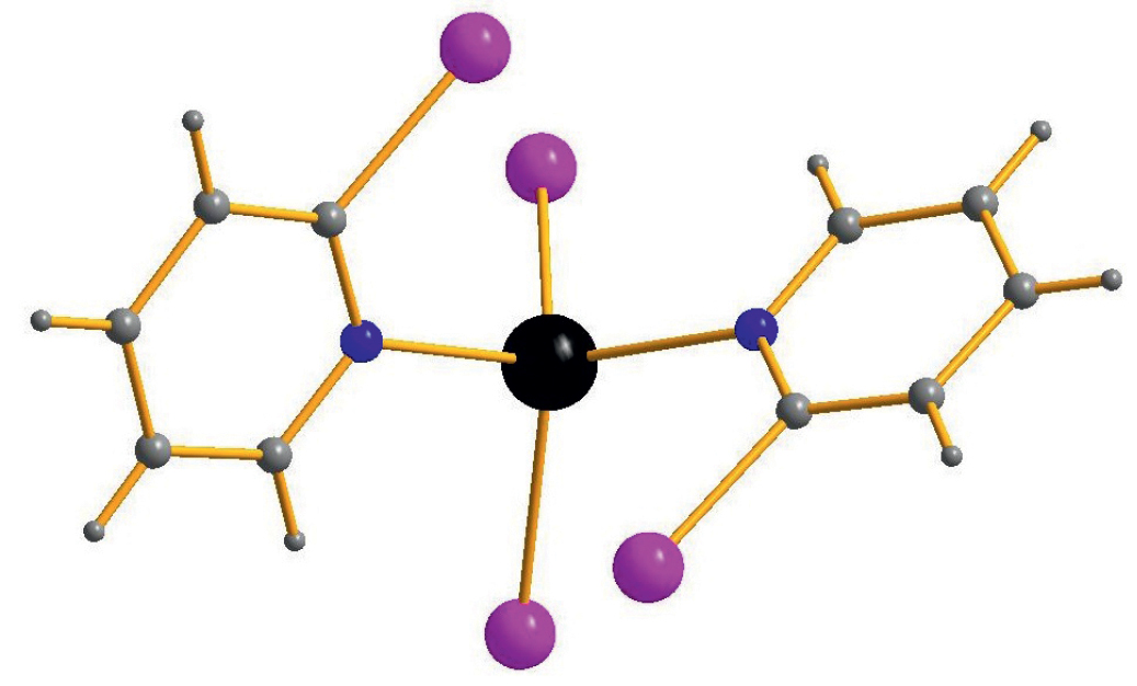 Синтез 1–4. Смесь CdI2 (50 мг; 0.136 ммоль) и двух эквивалентов лиганда (26 мкл 2-ClPy (1), 26 мкл 2-BrPy (2), 29 мкл 2-IPy (3) либо 47 мг 2-Br-5-MePy (4) растворяли в 5 мл этанола. Медленное упаривание раствора приводило к образованию бесцветных кристаллов 1–4, пригодных для РСА. Выход: 89% (1), 85% (2), 93% (3), 95% (4).