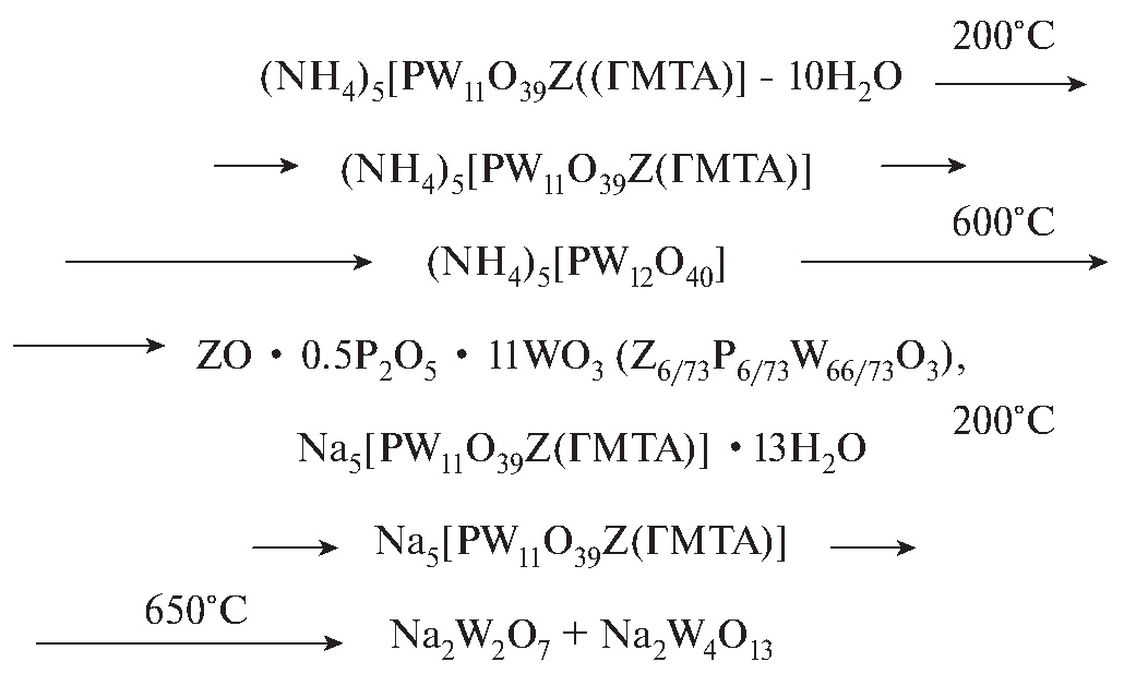 Процессы, протекающие при нагревании на воздухе аммонийных и натриевых солей вольфрамофосфатометаллатов с кобальтом, никелем, цинком и ГМТА в координационной сфере, представлены на рис. 4.