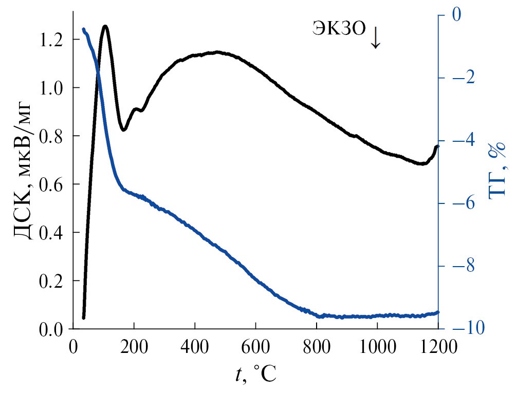Рис. 2. Термограмма аморфного диоксида кремния природного изотопного состава