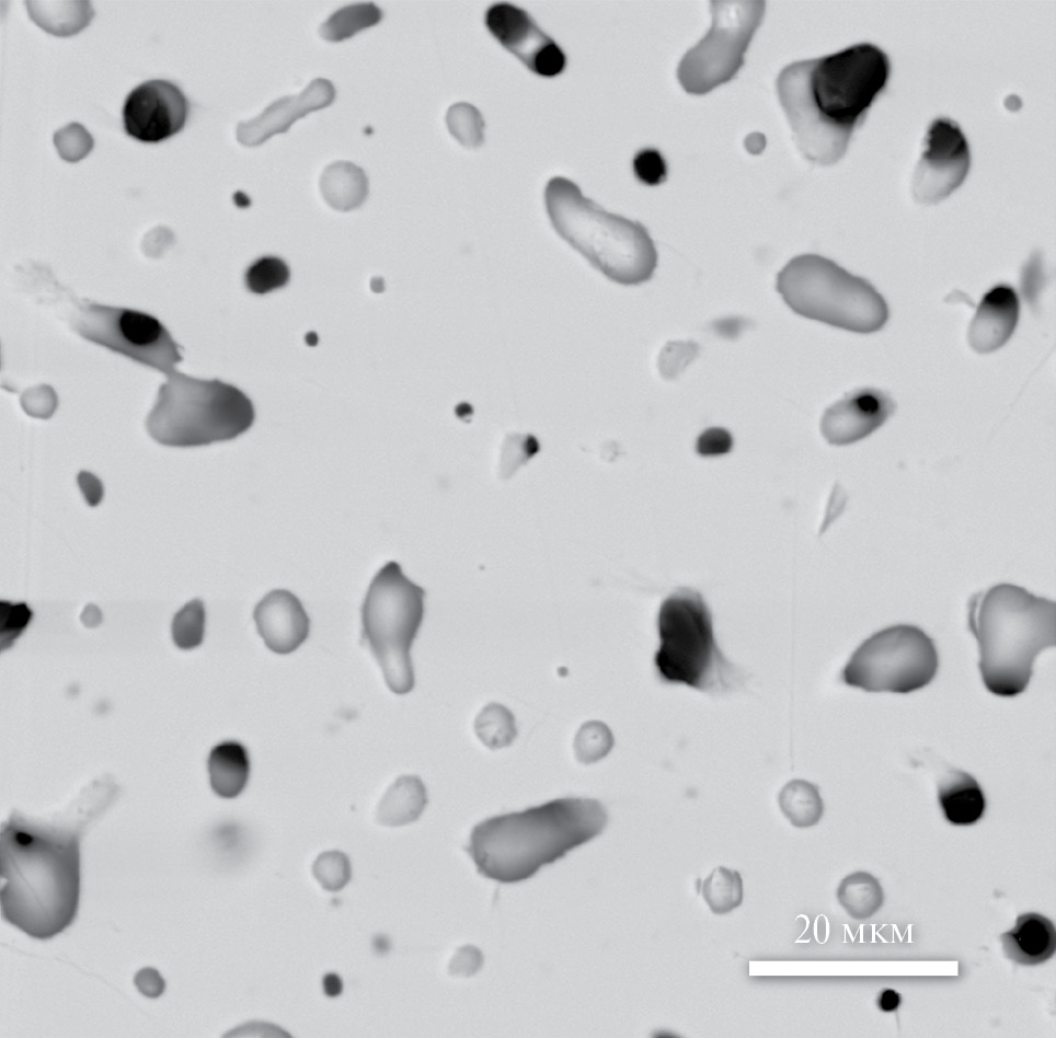 Рис. 2. Микрофотография отшлифованной поверхности высокоэнтропийной керамики (Mg0.2Cu0.2Ni0.2Co0.2Zn0.2)Nb2O6 в режиме упруго-отраженных электронов.